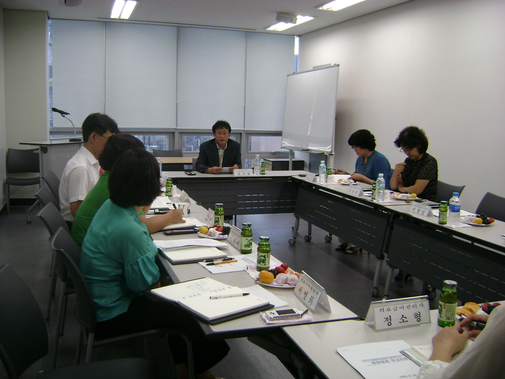 공문 없이 전화로 하루 전에 급박하게 오신다고 하여 울 사회복지과에서는 작은 소요가 있었답니다. 처음에는 센터에서 접견을 할려고 했는데, 예의가 아니라고, 급수정하여 자원봉사센터를 빌려 현수막도 걸고, 조촐한 다과도 준비하여 과장님을 맞았답니다.